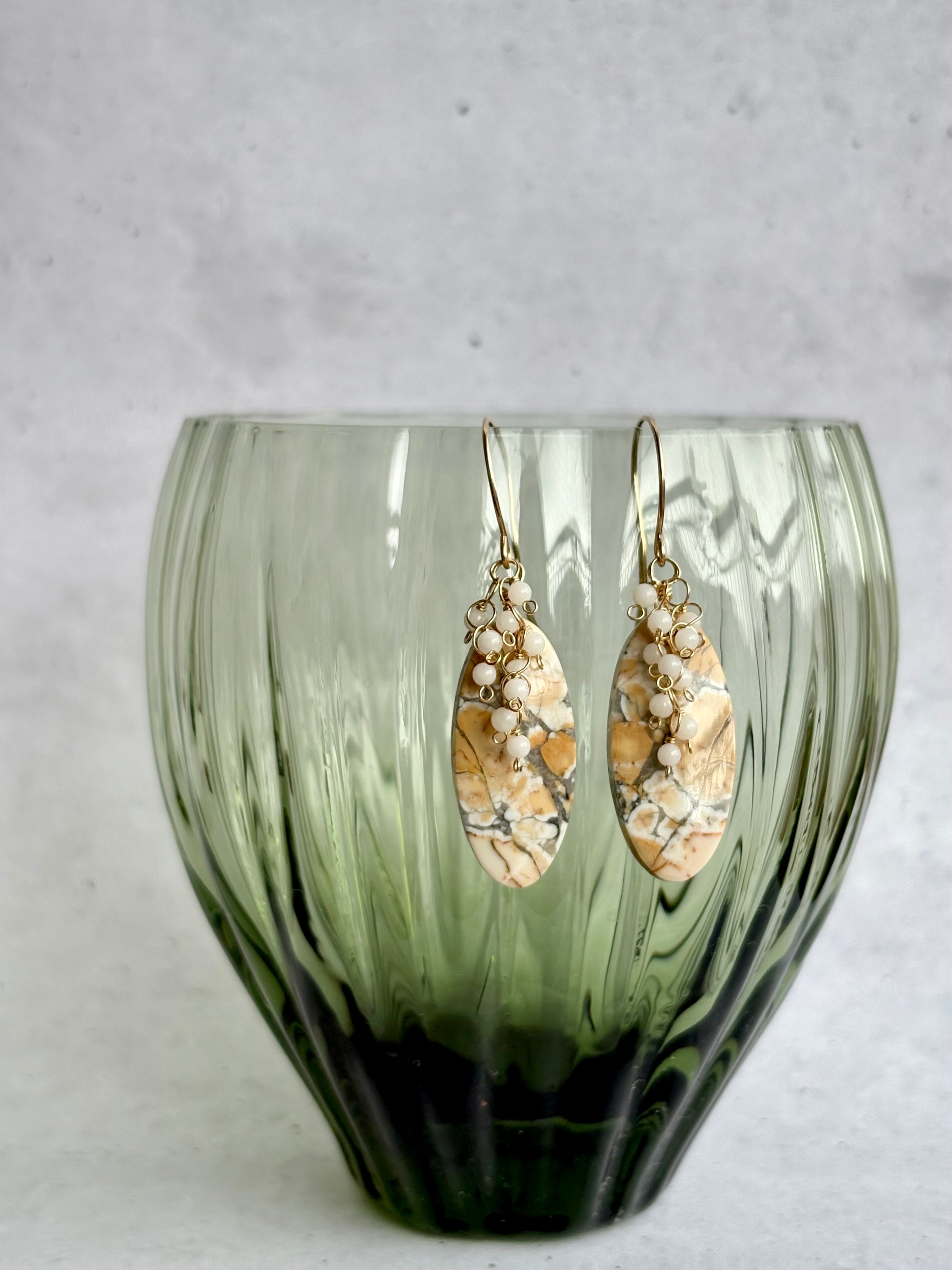 優しい色合いをしたマリガノジャスパーのピアス。