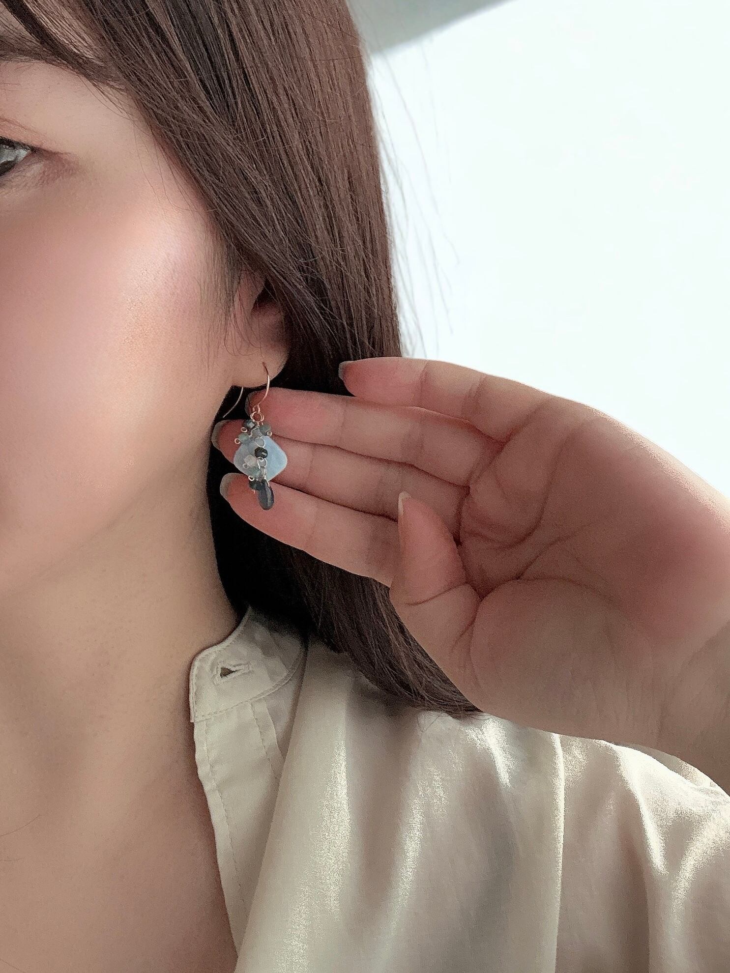 Blue Opal × Indigolite Tourmaline[フックピアス]