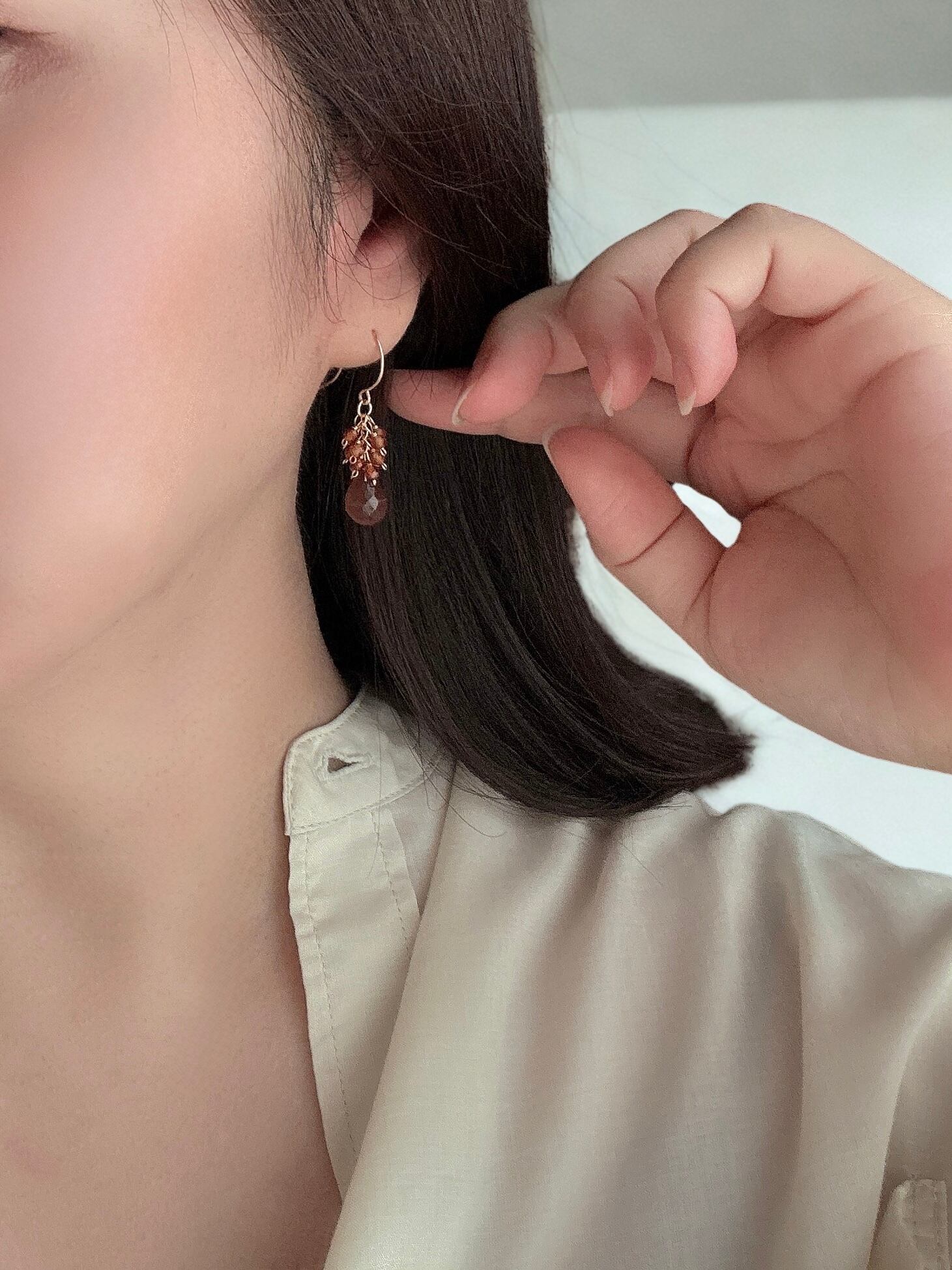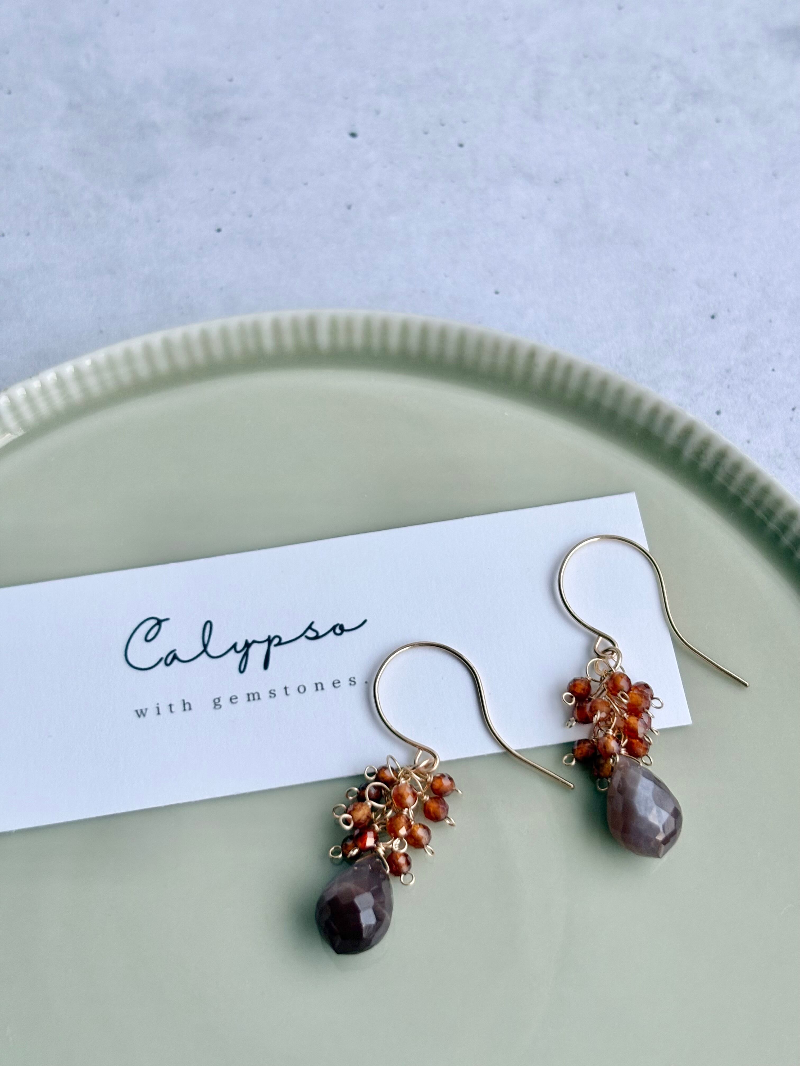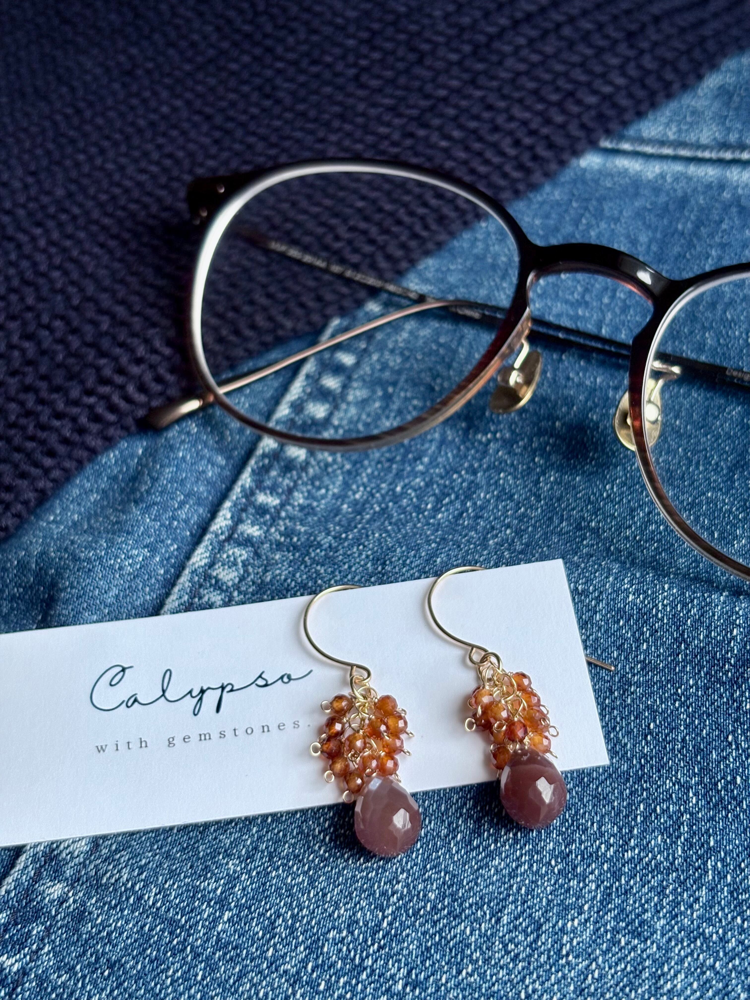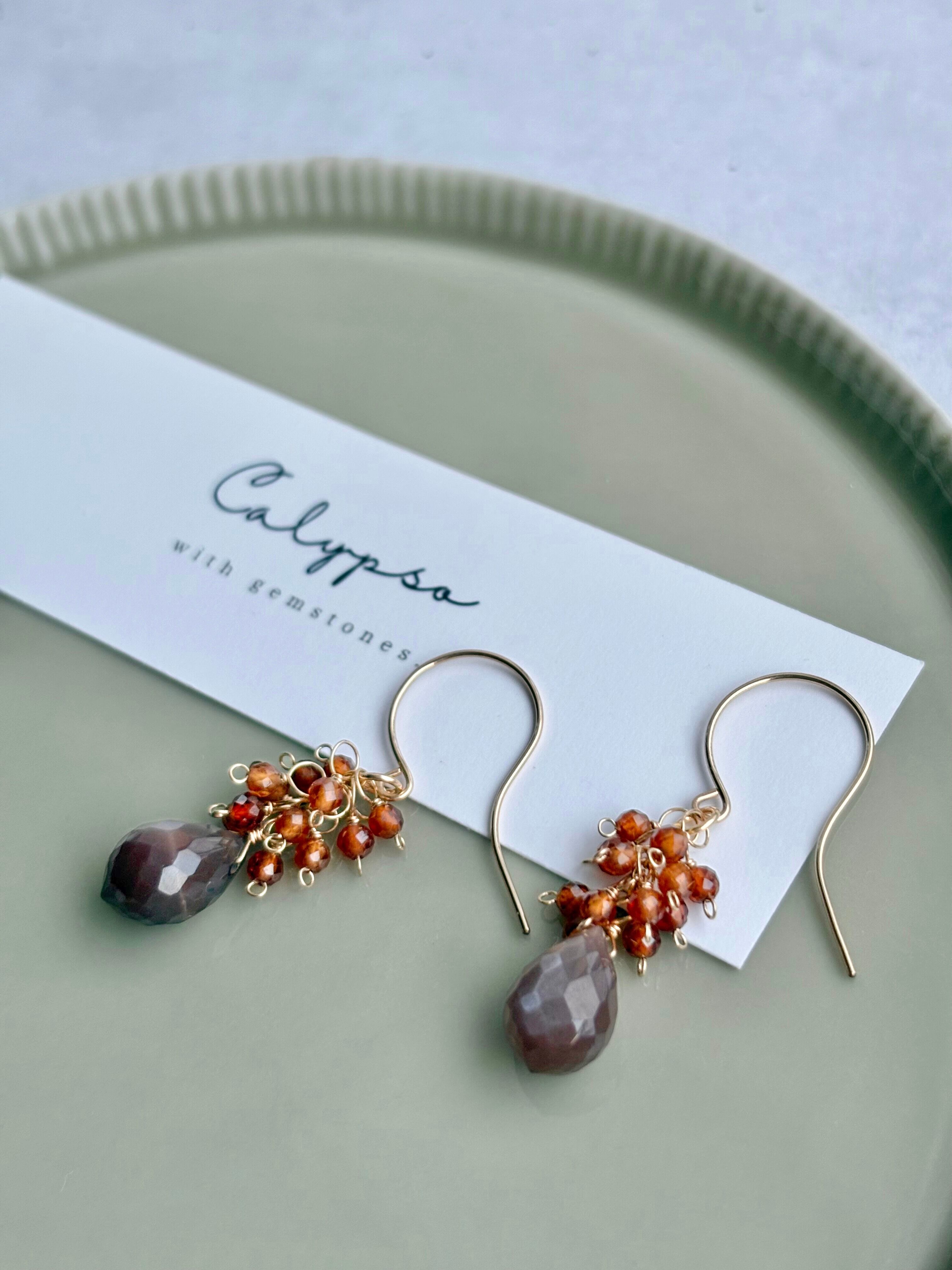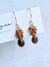 まるでチョコレートのようなブラウンのムーンストーンに鮮やかなオレンジを合わせた秋色のピアスです。