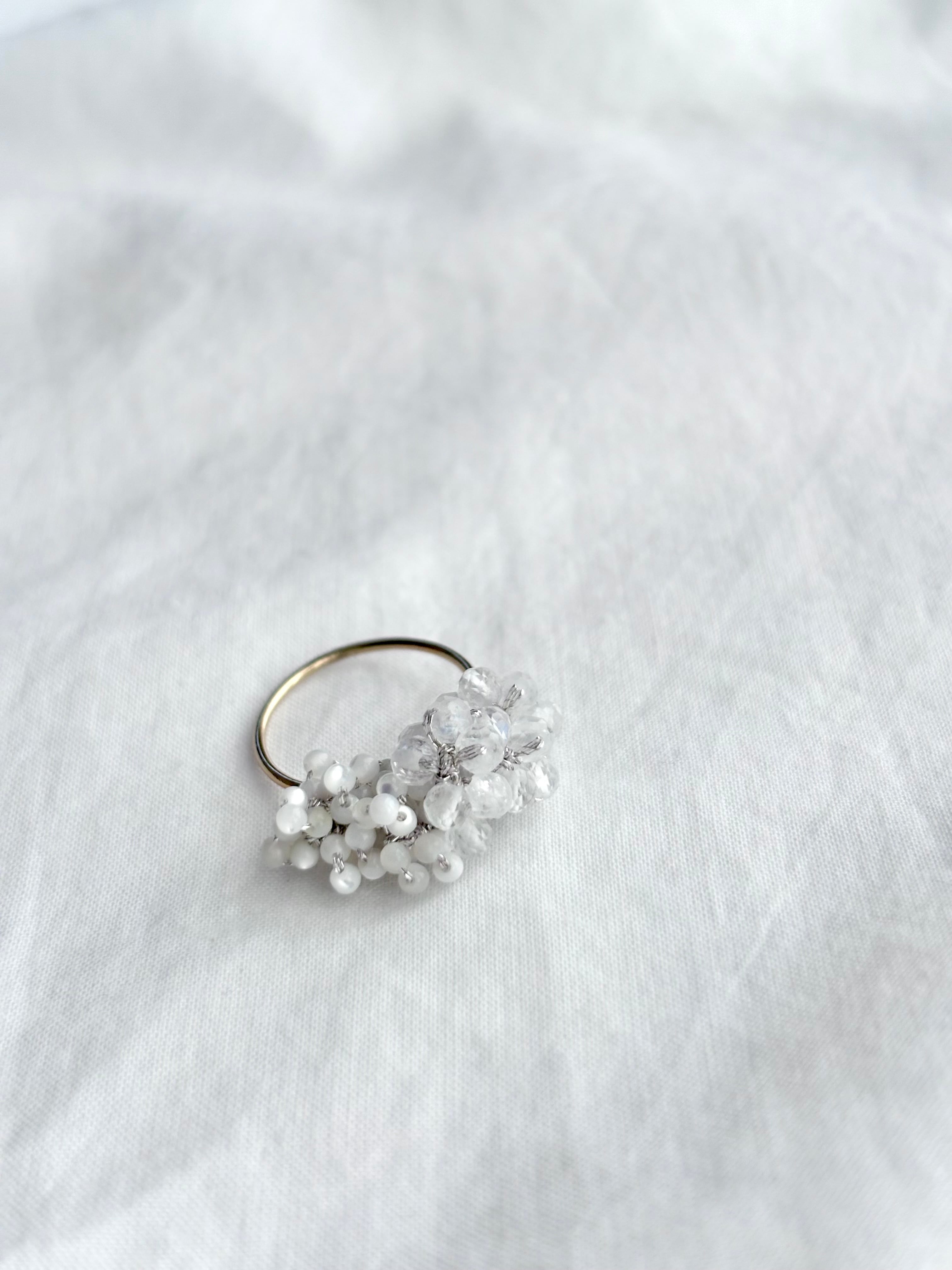 小さな鉱石の結晶のような、あるいは白の小さなお花を束ねたようなリングです。