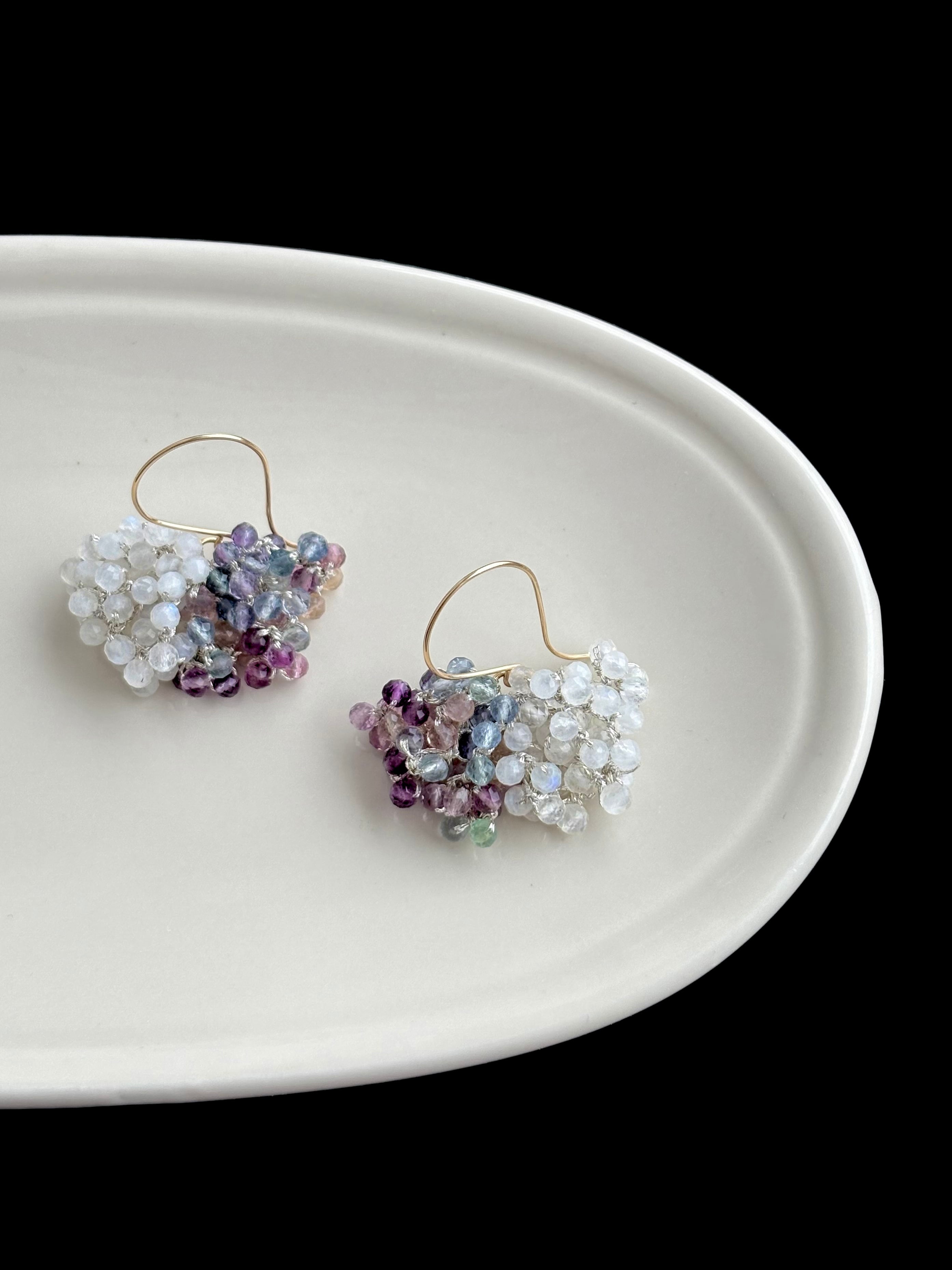 【受注制作】Fluorite × Rainbow Moonstone[フックピアス]