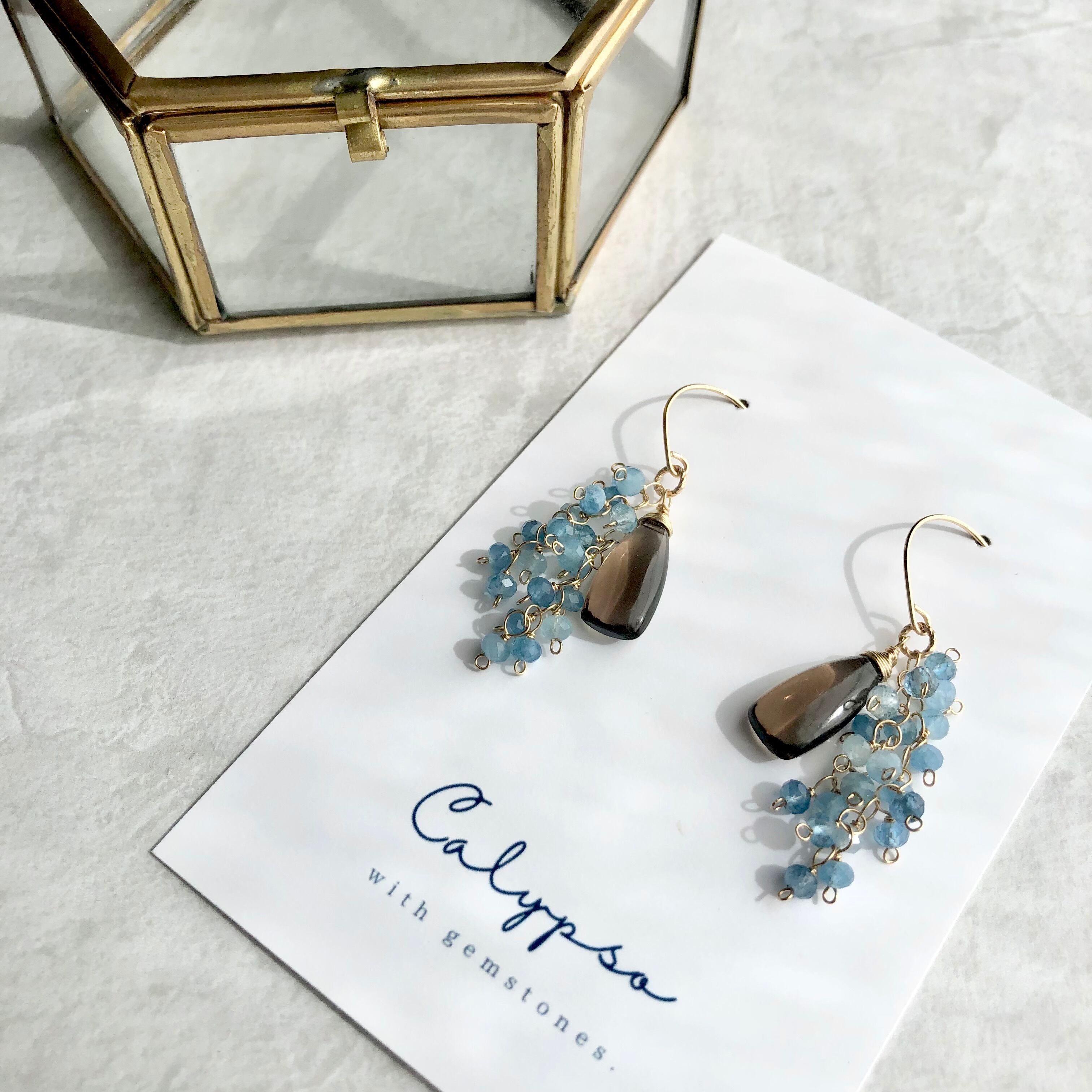 Calmness[ピアス/スモーキークォーツ・ディープブルーアクアマリン]