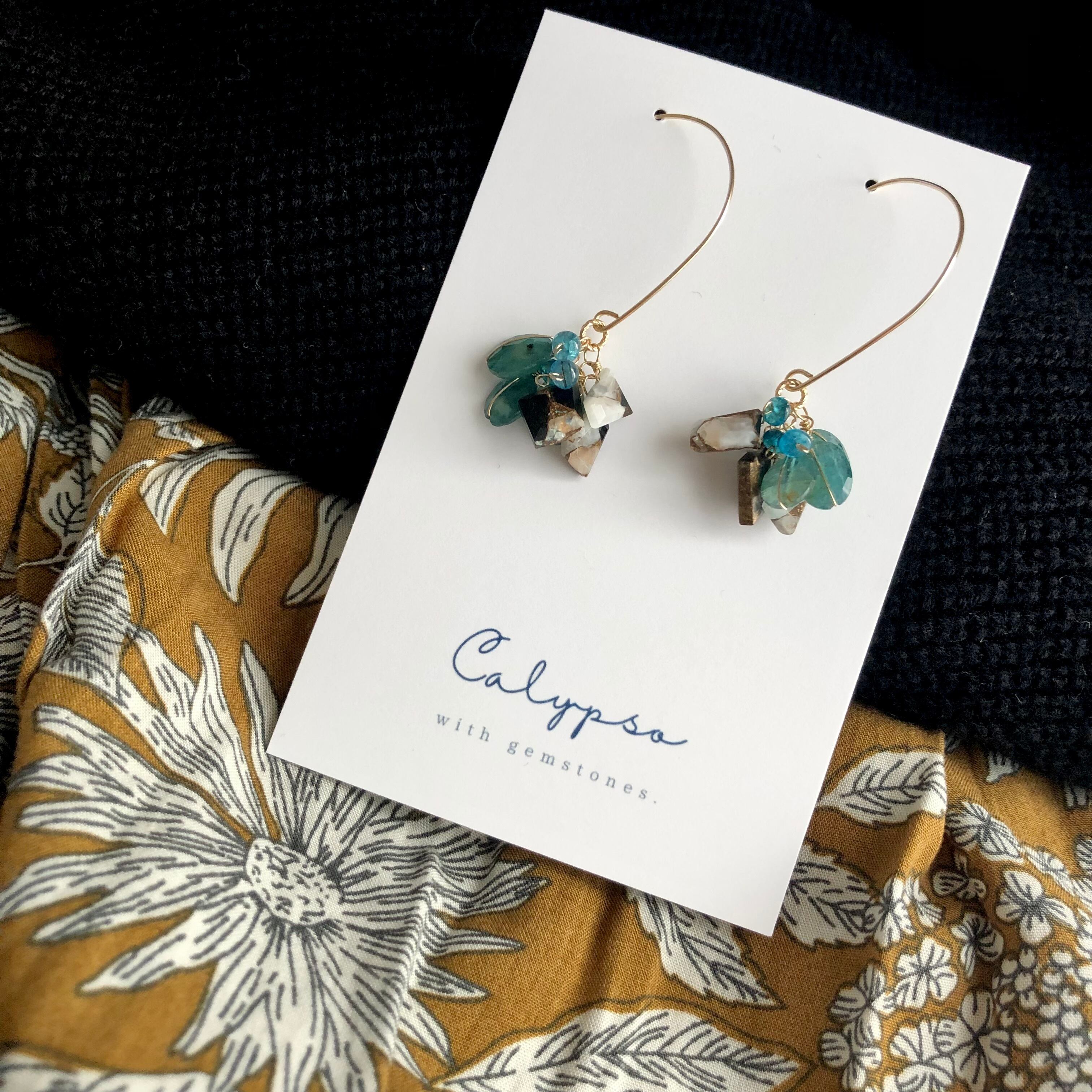 Self Expression[ピアス/グランディディエライト・コッパーカルサイトオブシディアン・ネオンブルーアパタイト]