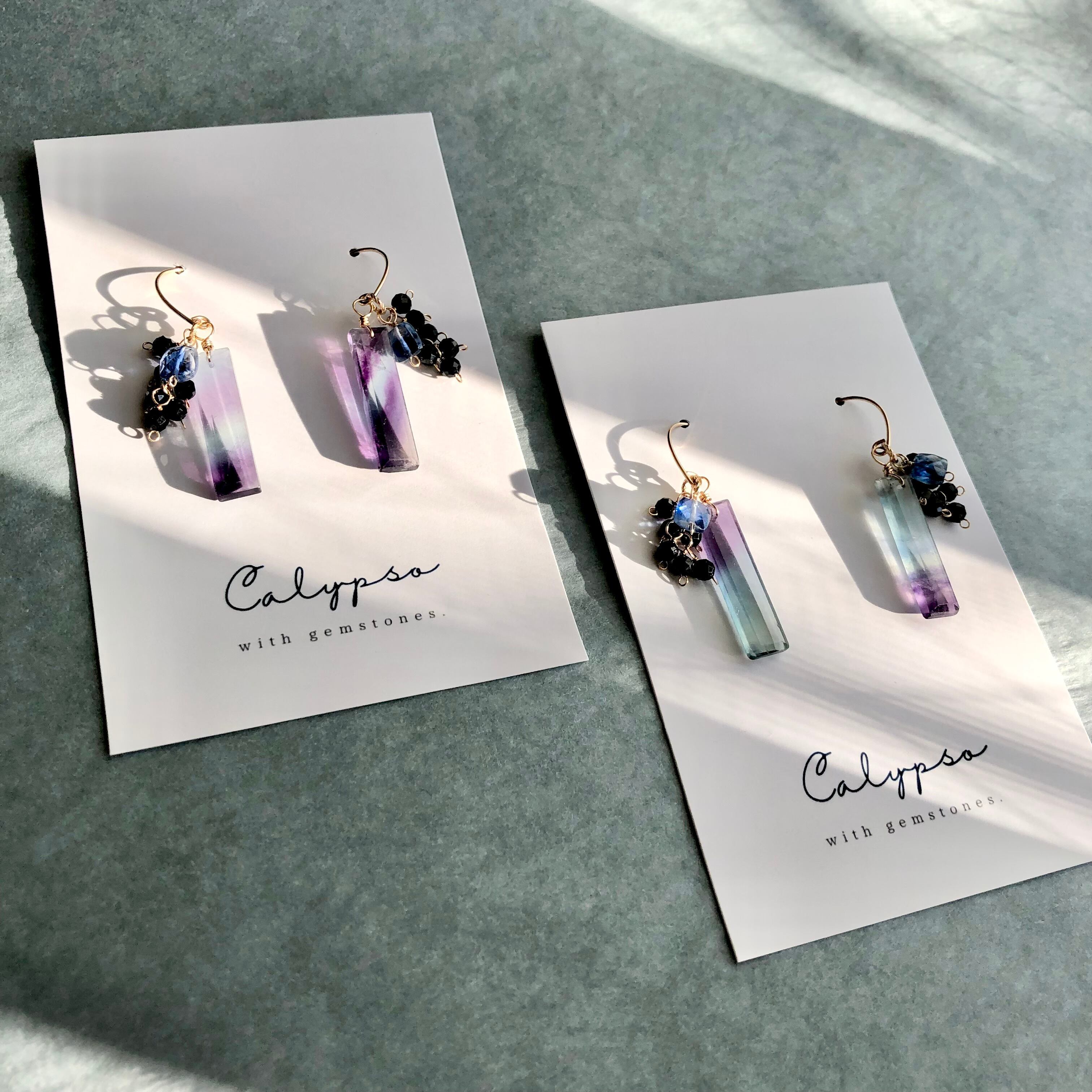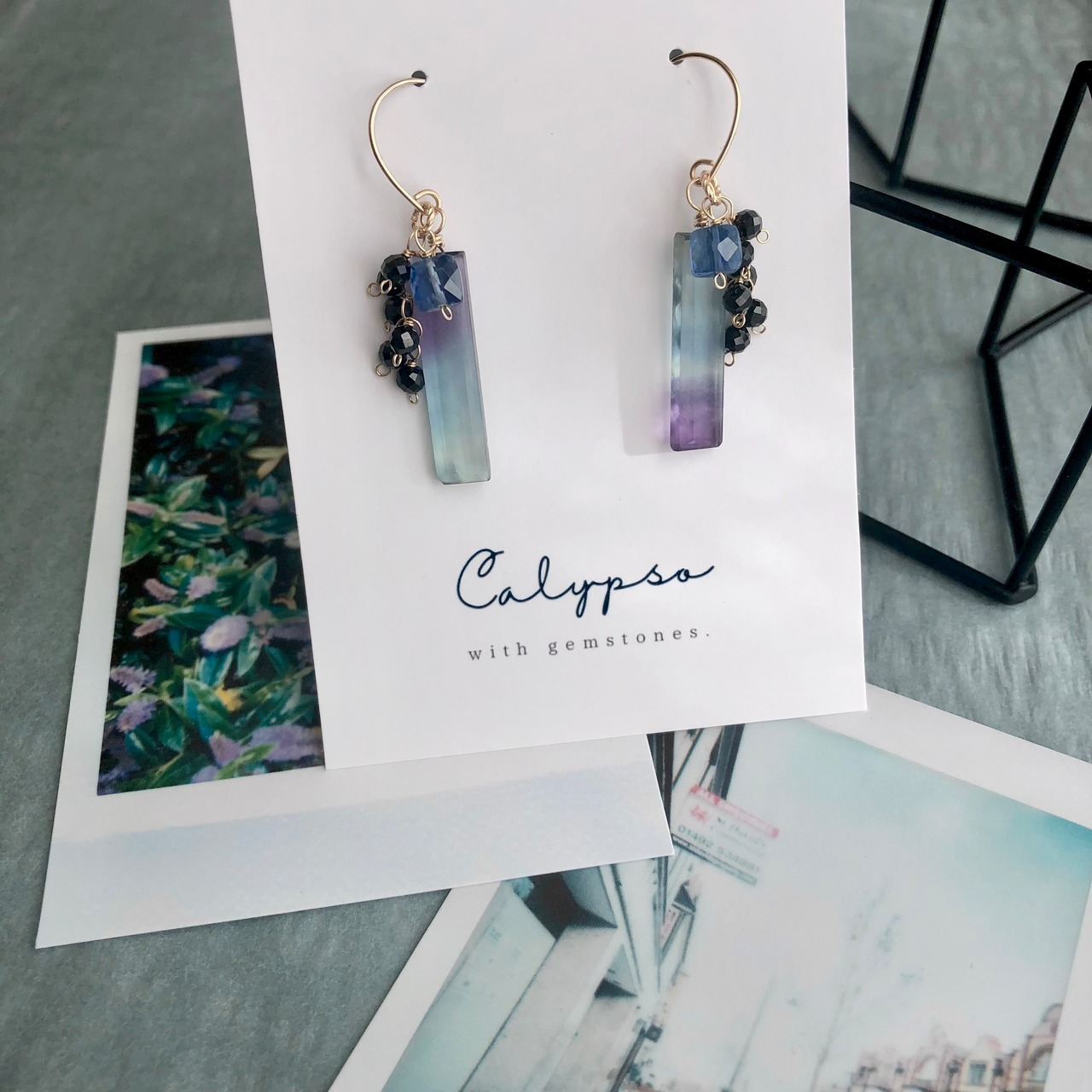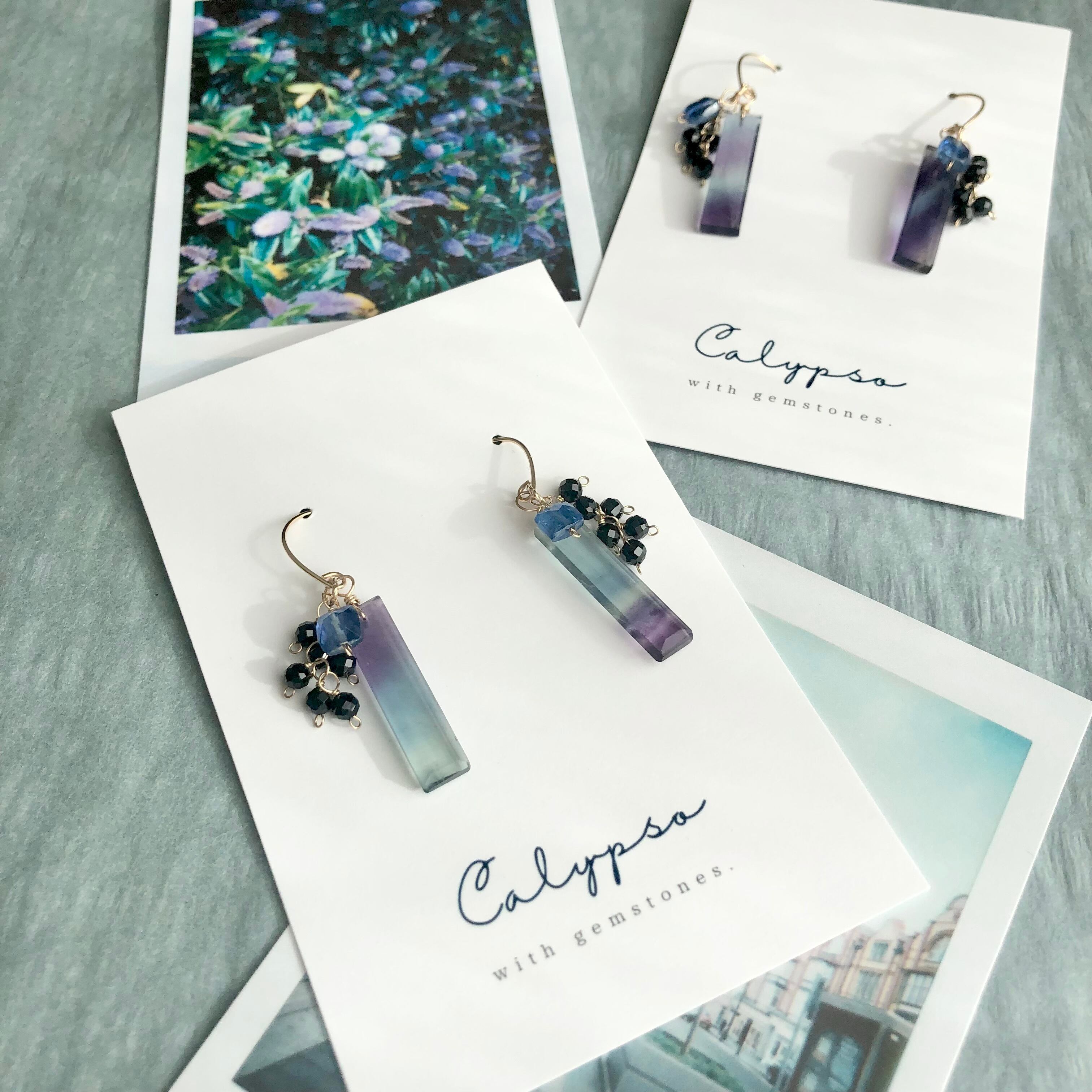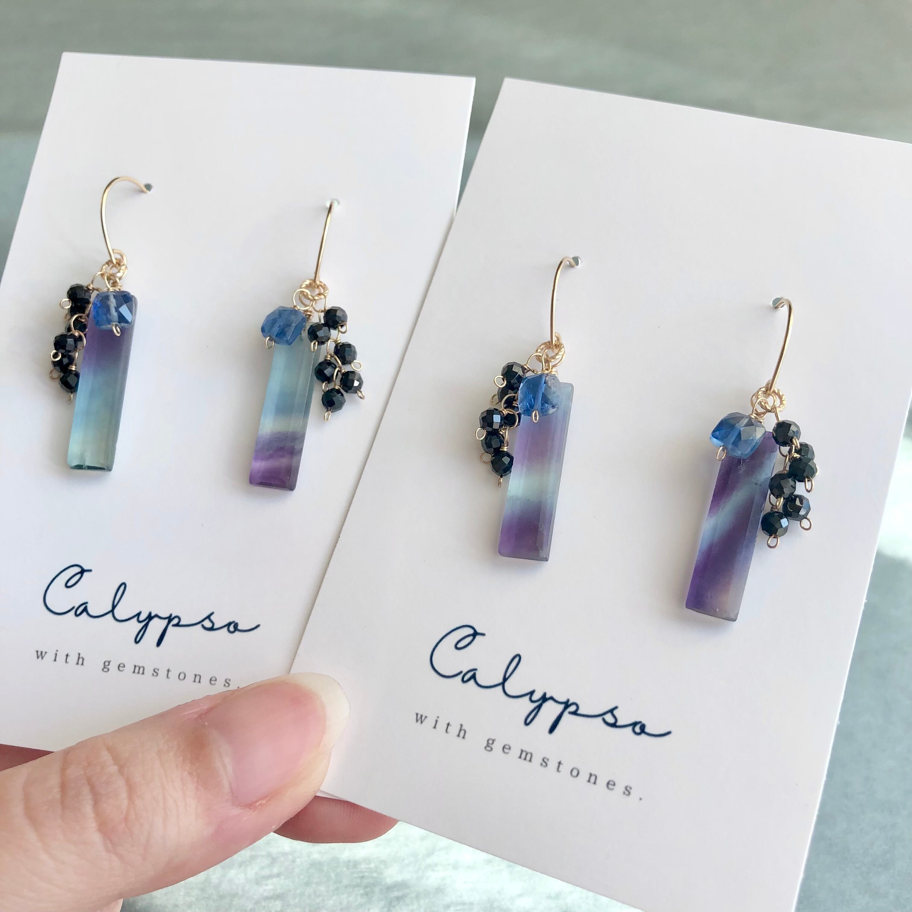 Fluorite Magic blue green[ピアス/フローライト・ブラックスピネル・カイヤナイト]